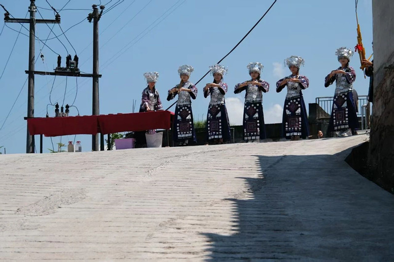 在巨嶺酒業(yè)廠區(qū)喝苗家阿妹的進(jìn)門酒